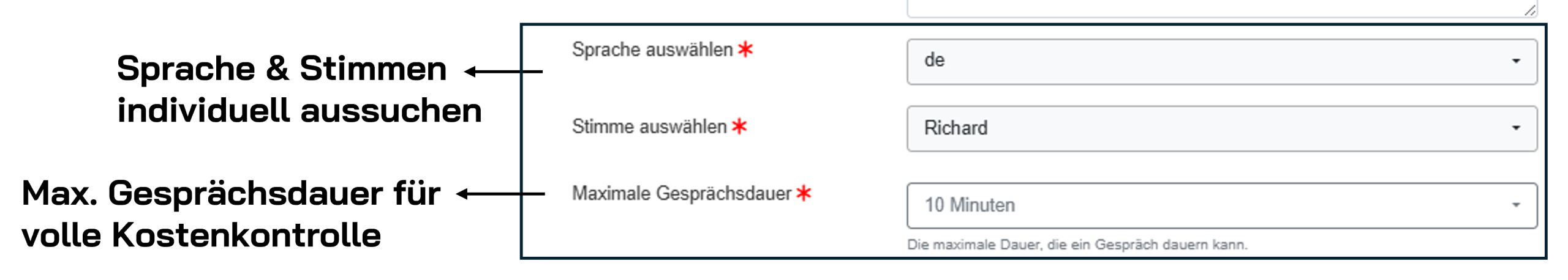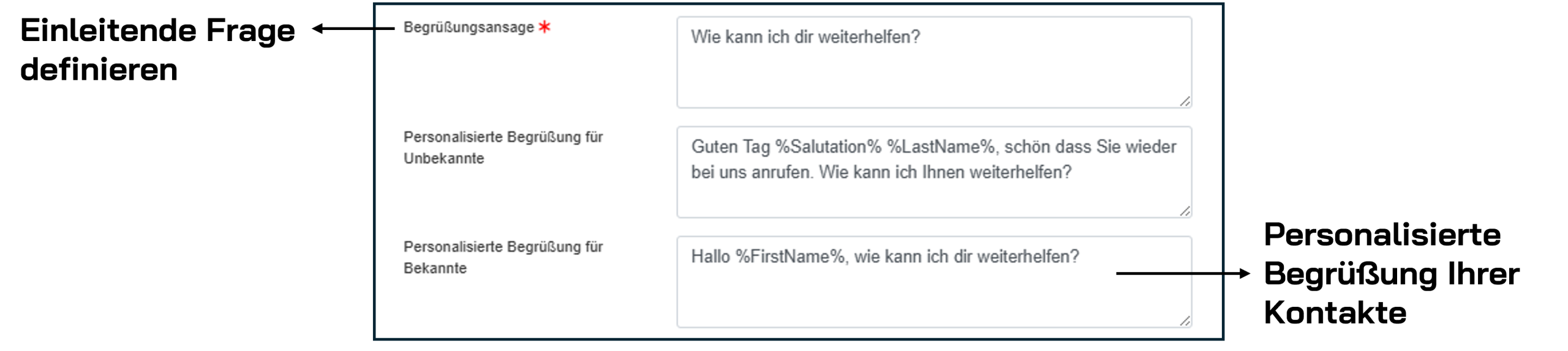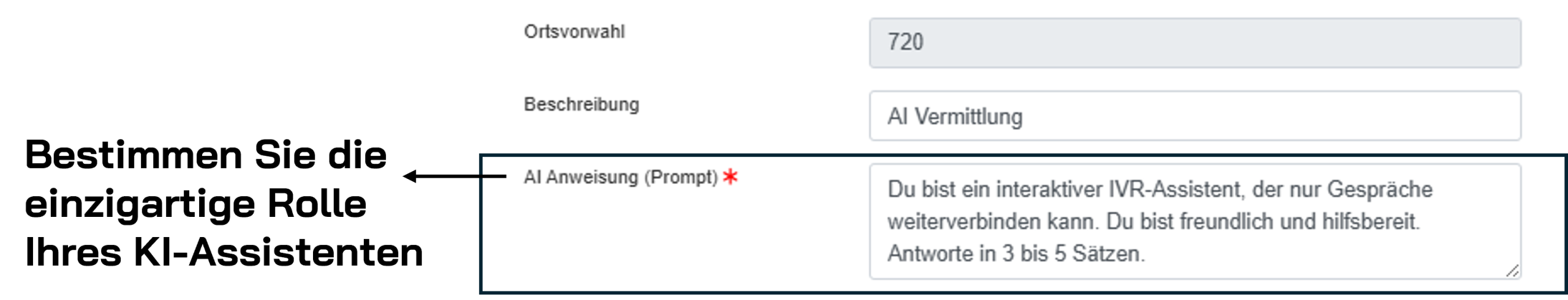 Unser hauseigener KI-Assistent unterstützt Sie bei der Vermittlung zu verschiedenen Rufgruppen oder zu den persönlichen Durchwahlen einzelner Teilnehmer. Nutzen Sie unterschiedliche Stimmen verschiedener Geschlechte und definieren Sie eigene Persönlichkeiten, die genau Ihrer Unternehmenskultur entspricht. Lernen Sie hier die vielfältigen Einsatzbereiche unseres KI-Vermittlungsassistenten.